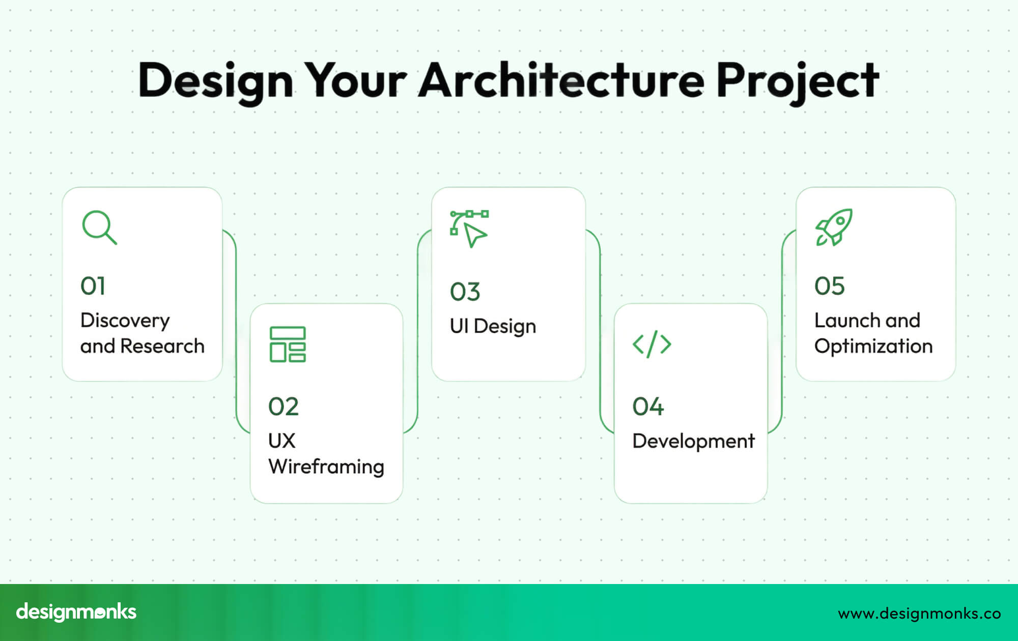 A clear website design process helps architecture firms build professional websites with a strong structure and smooth user experience. Each stage focuses on planning, visual clarity, and technical quality so the final website supports client trust and business growth.