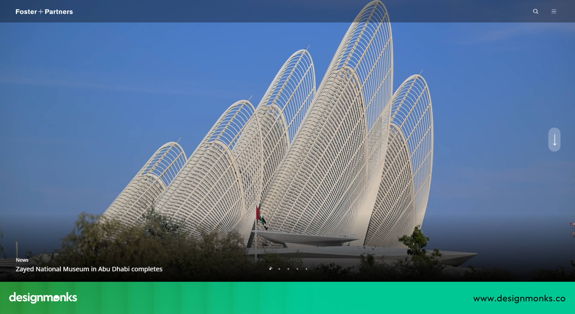 The Foster + Partners website presents a refined and highly organized architectural portfolio. Visitors can explore global projects, research work, and studio initiatives through structured navigation and balanced visual presentation.