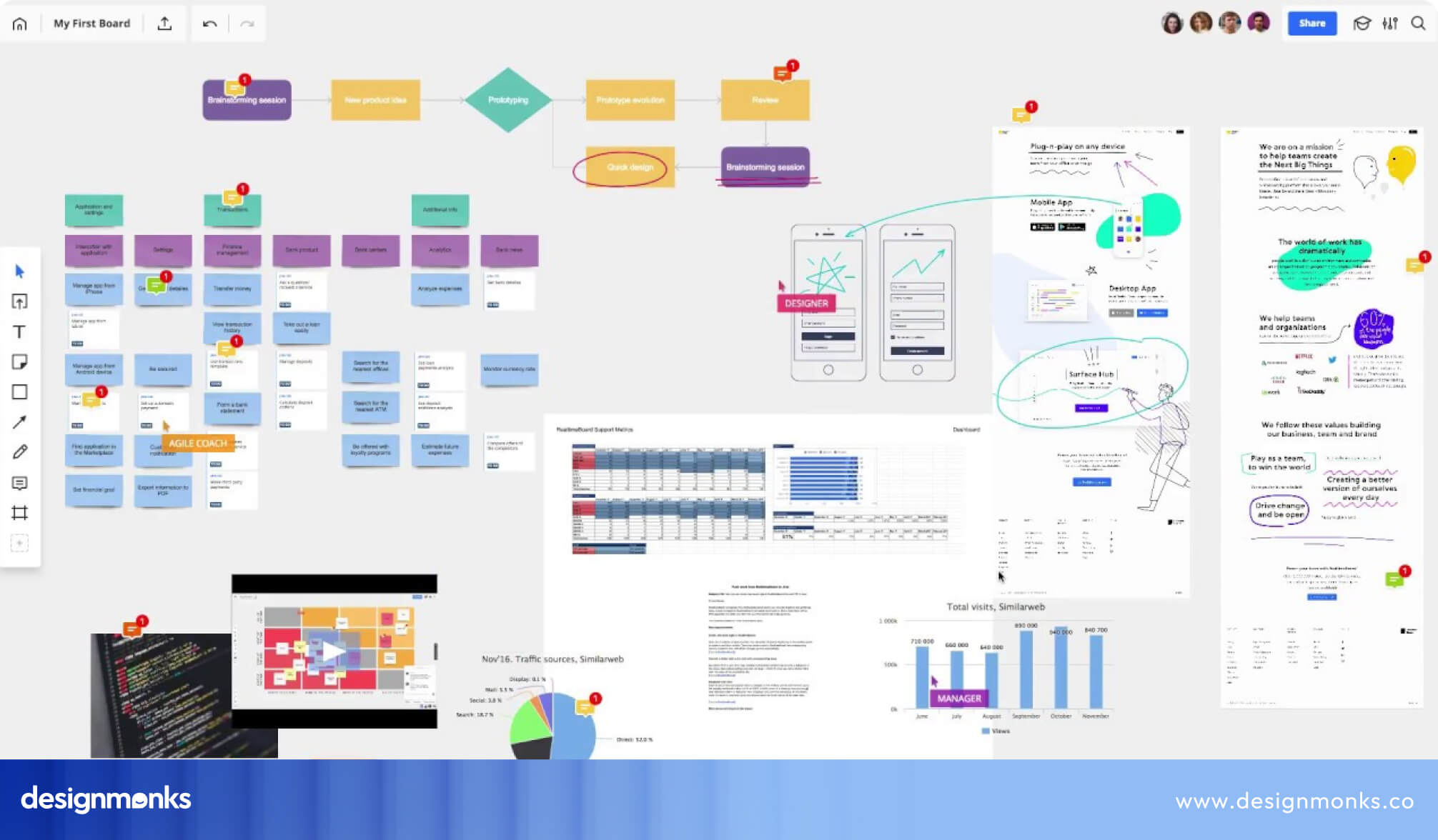 Meet Miro, a collaborative online whiteboarding platform that revolutionizes the way teams work together. Using this tool, teams can brainstorm, ideate, and visualize ideas in real time.