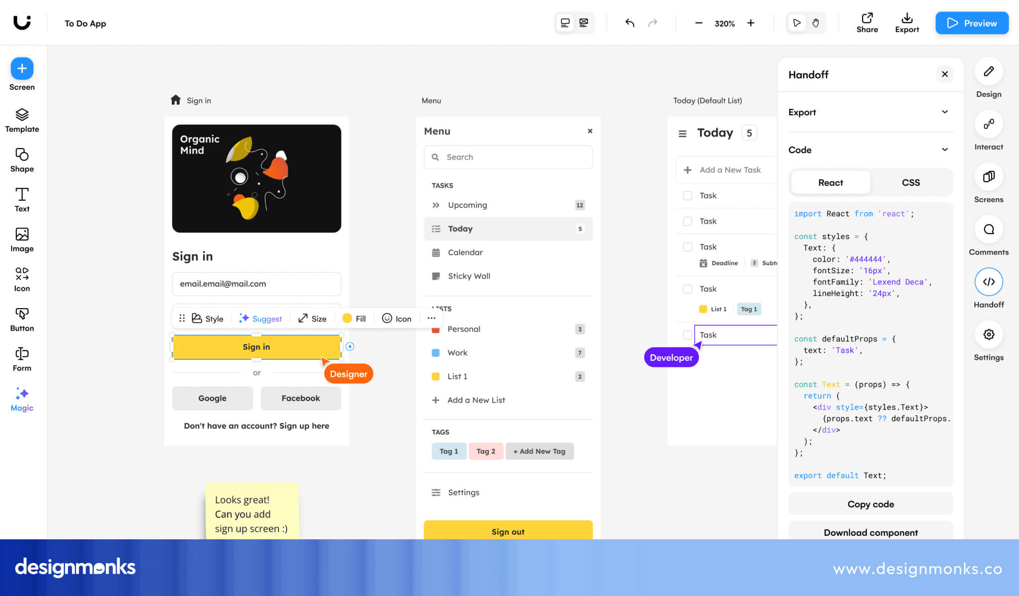 - Easy to create high-fidelity product designs and full-stack prototypes.