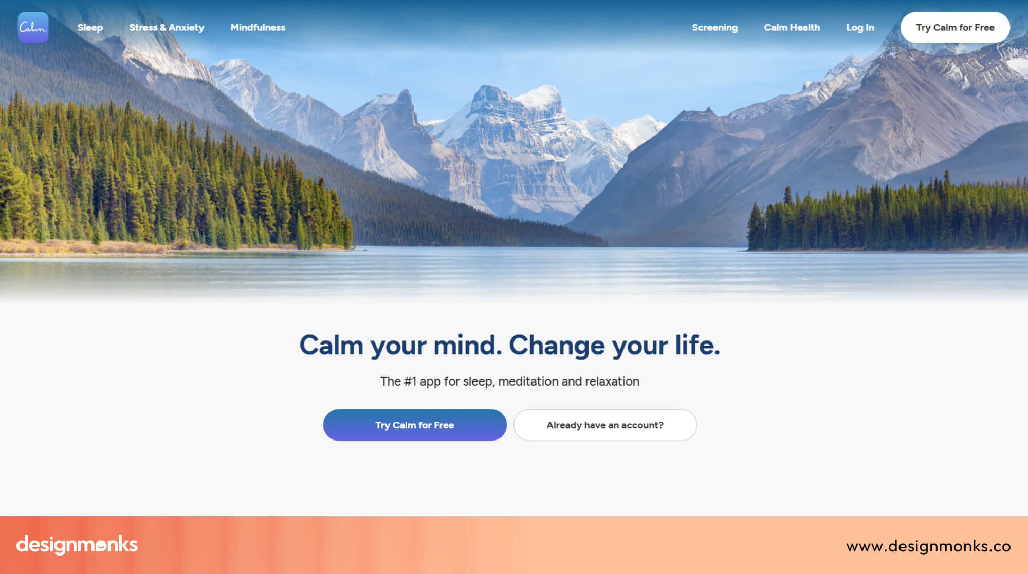 Calm uses soft blue tones to immediately reduce mental tension. The Color supports the app’s purpose by creating a peaceful atmosphere that encourages slower breathing and focused attention.