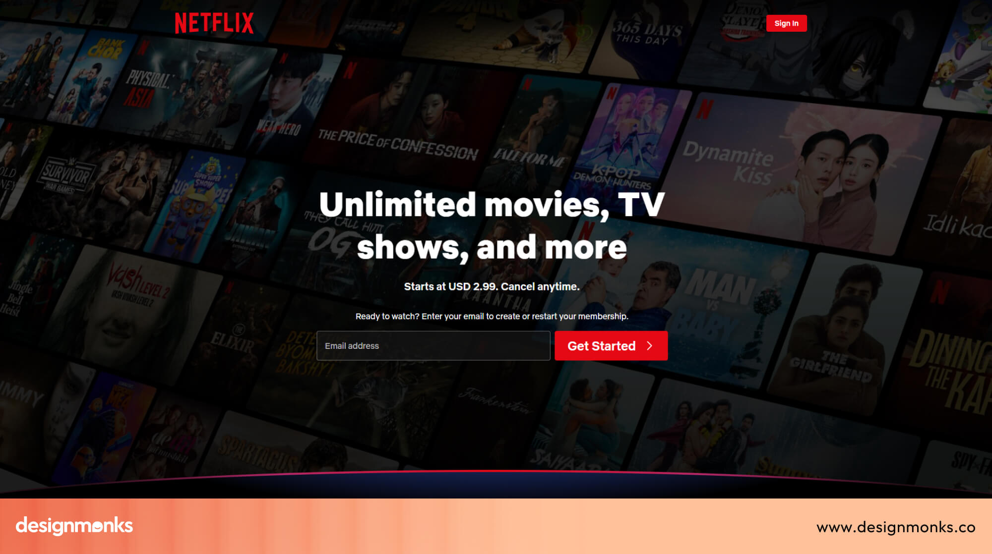 Netflix combines black backgrounds with red accents to create a strong contrast and visual focus. Black keeps attention on content, while red highlights key actions.