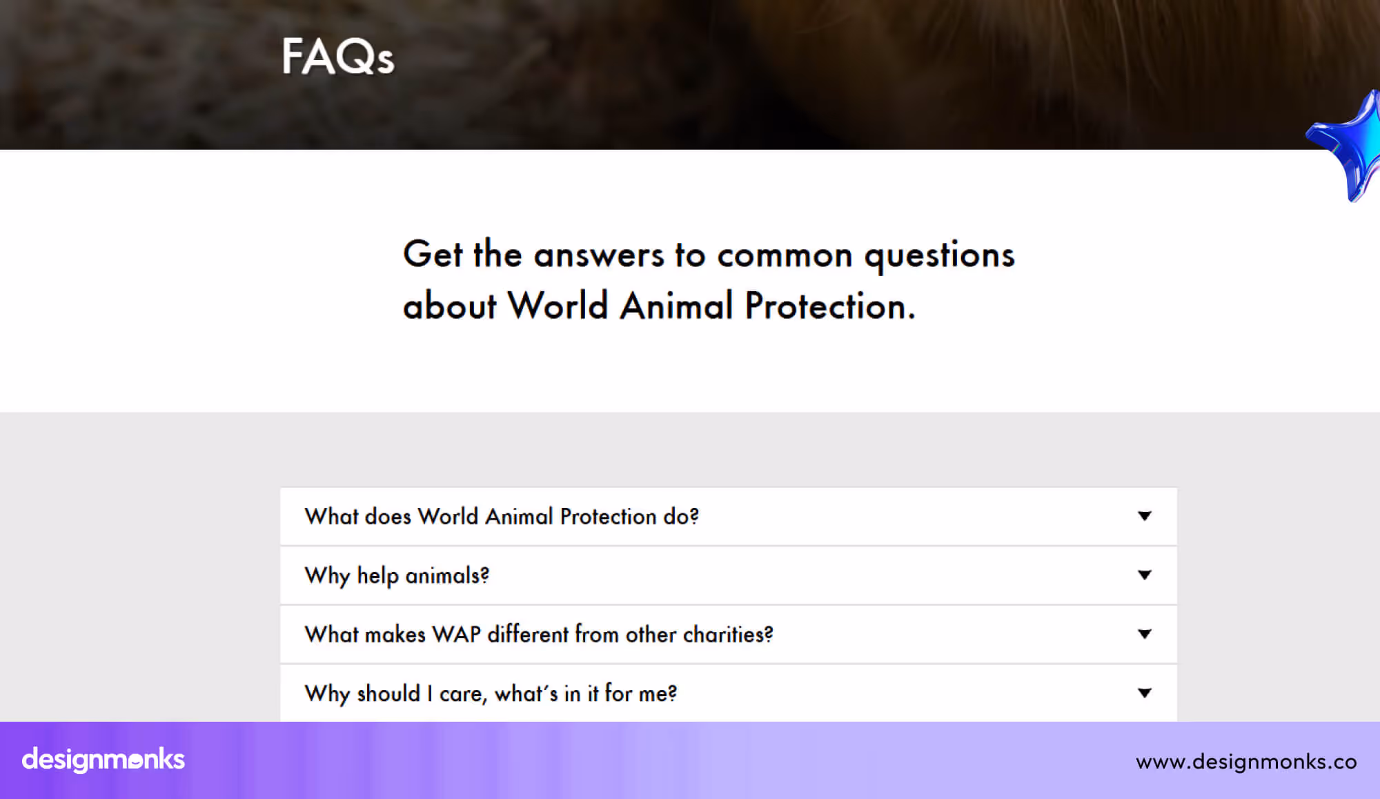The World Animal Protection FAQ page gives clear answers about the organisation’s mission, global work, and commitment to ending animal cruelty. It explains how they protect animals in farms, communities, and the wild, helping visitors understand their long-term impact.