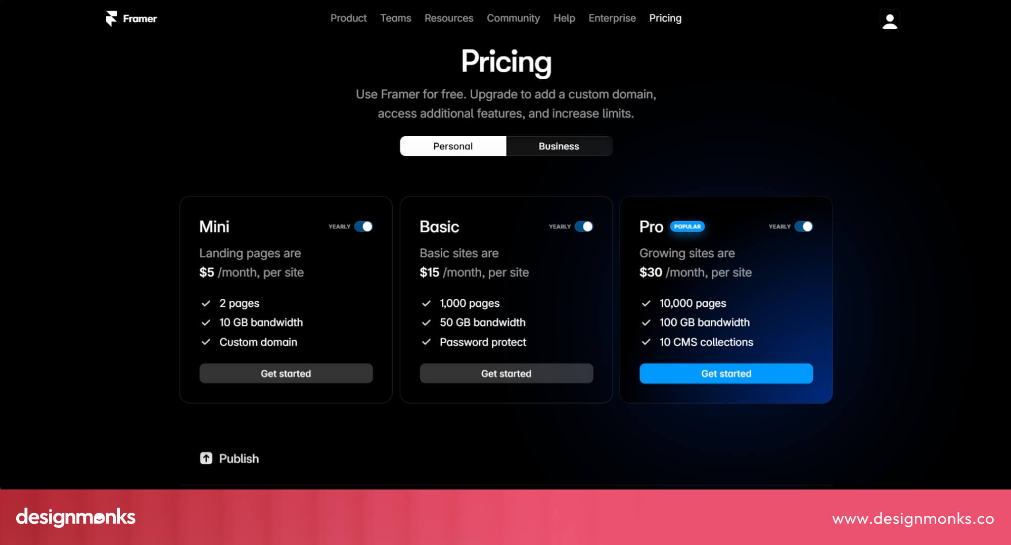 Here’s a snapshot of Framer design pricing plans: