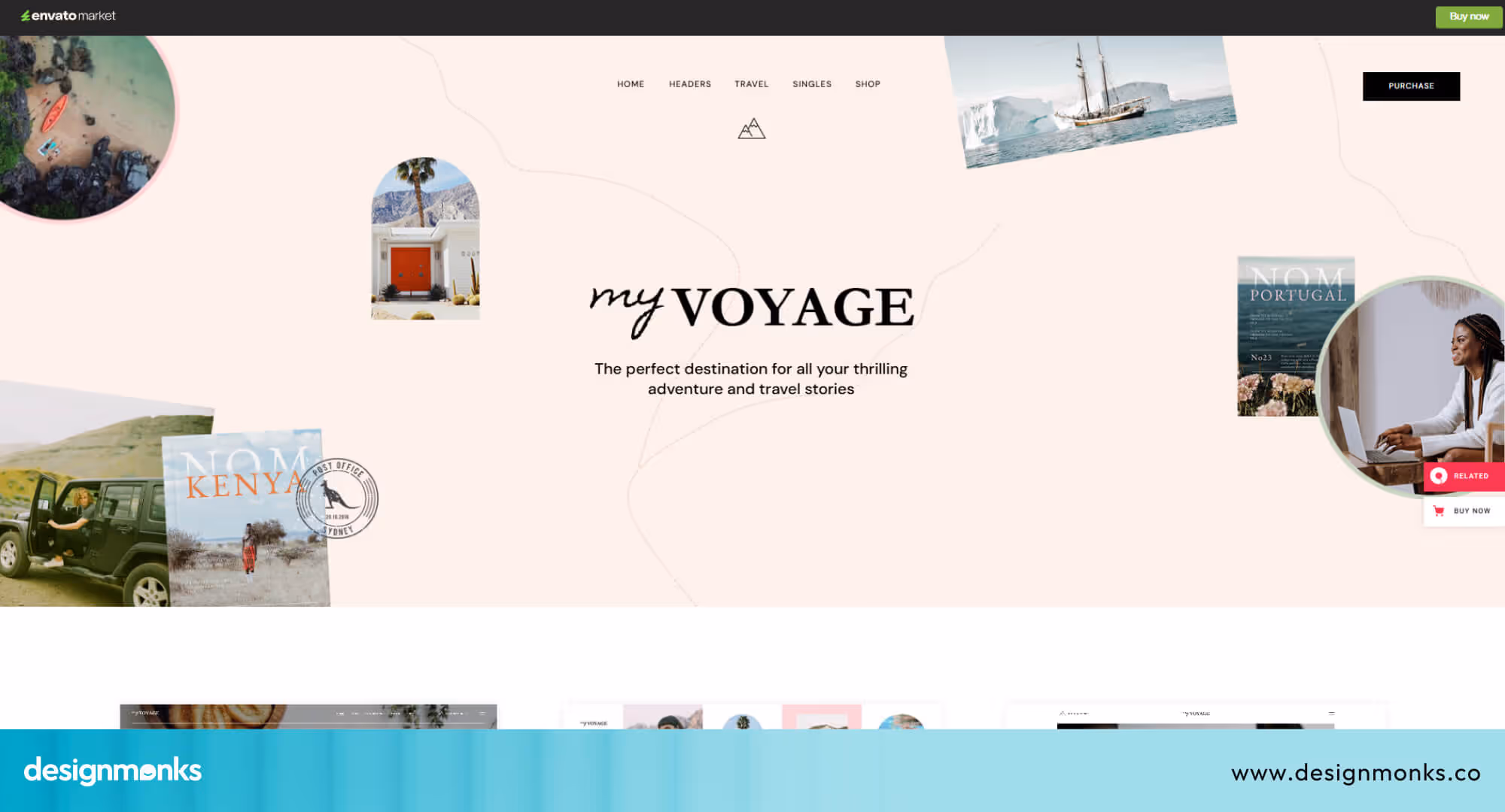 If you have a plan to create a travel-based blog website, you can consider MyVoyage as an ideal travel website design example. It delivers a flexible and content-focused blog layout ideal for storytellers and travel writers. The clean white aesthetic keeps photos and posts front-and-center, while Elementor integration and multiple blog formats simplify customization.