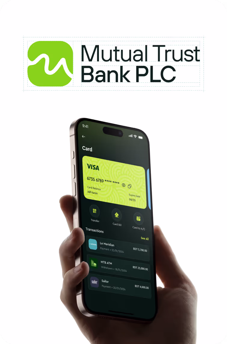 Mutual Trust Bank’s mobile app redesign focused on creating a smooth and intuitive banking experience that builds trust and convenience. The project aimed to unify the app’s design, simplify key workflows like fund transfers and KYC, and introduce personalized features. By blending modern UI with MTB’s brand values, the app delivers faster, clearer, and more accessible banking for all users.